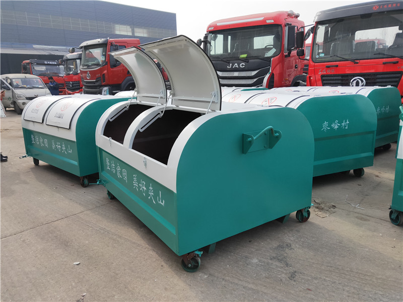 勾臂垃圾车配套移动垃圾箱外形以上梯形下长方形、上弧形下长方形、上弧形下弧形、长方形为主,箱体两边各带一对或二对垃圾投入口或顶部开口,带盖式箱体能够避免风将轻质垃圾(塑料袋,废纸等)吹散和防止雨水进入箱内;箱体底部带一对铁轮方便吊上卸下时垃圾箱的移动,箱体后部可开启【带锁紧机构,配备密封条】。勾臂垃圾箱外观形状、大小容积可根据用户需求定制加工。