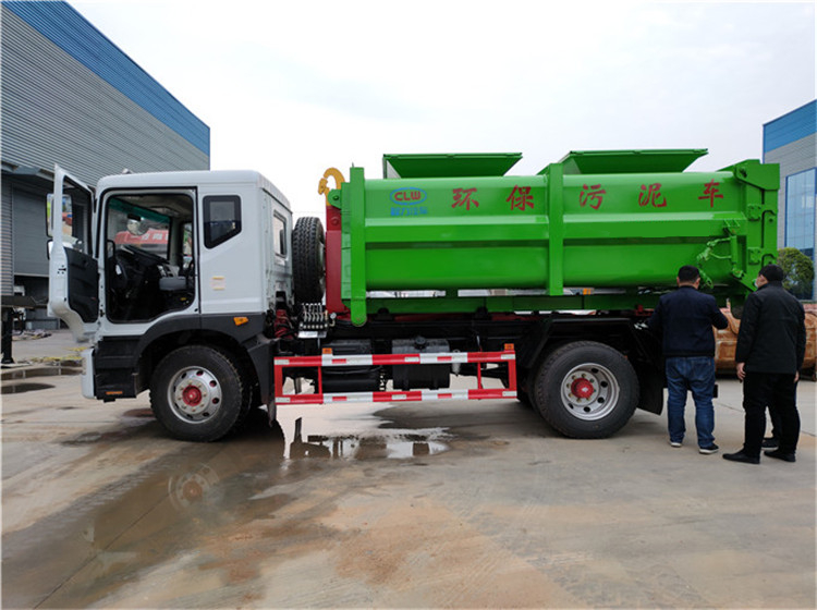 勾臂式污泥清运车也叫车厢可卸式运输污泥车,一台车可以配多个收集箱循环运输,箱体的容积、外形、功能、液压控制、可以根据用户的要求加工定制。广泛适用于污水处理厂、供排水公司、市政环卫、养殖场、有机肥加工厂等,是清运含水污泥、淤泥、垃圾、养殖粪污粪便、有机肥的环保自卸车。