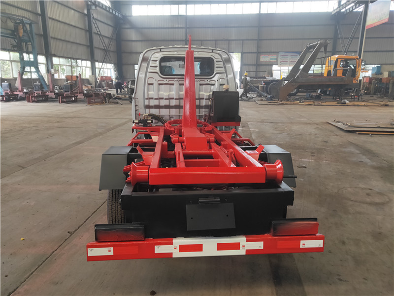 勾臂垃圾车【车厢可卸式垃圾车】车体和垃圾箱可完全分离,由液压系统来完成收箱/放箱,在平日里可将车载垃圾箱放置到各个垃圾收集点,待垃圾收集满后,该车可直接开赴收集点,通过液压系统的操控,可将垃圾车后座上加装的勾臂放下,挂住站内箱体前端的连接点,将垃圾箱拉车体的后座上,此时即可开动车辆,将垃圾运送垃圾处理站内,进行自卸式倾倒,优点就是可一车配多斗,一辆车就可以维持数个垃圾收集站的运转,效率高,且箱体为密封式设计,不会造成二次污染。