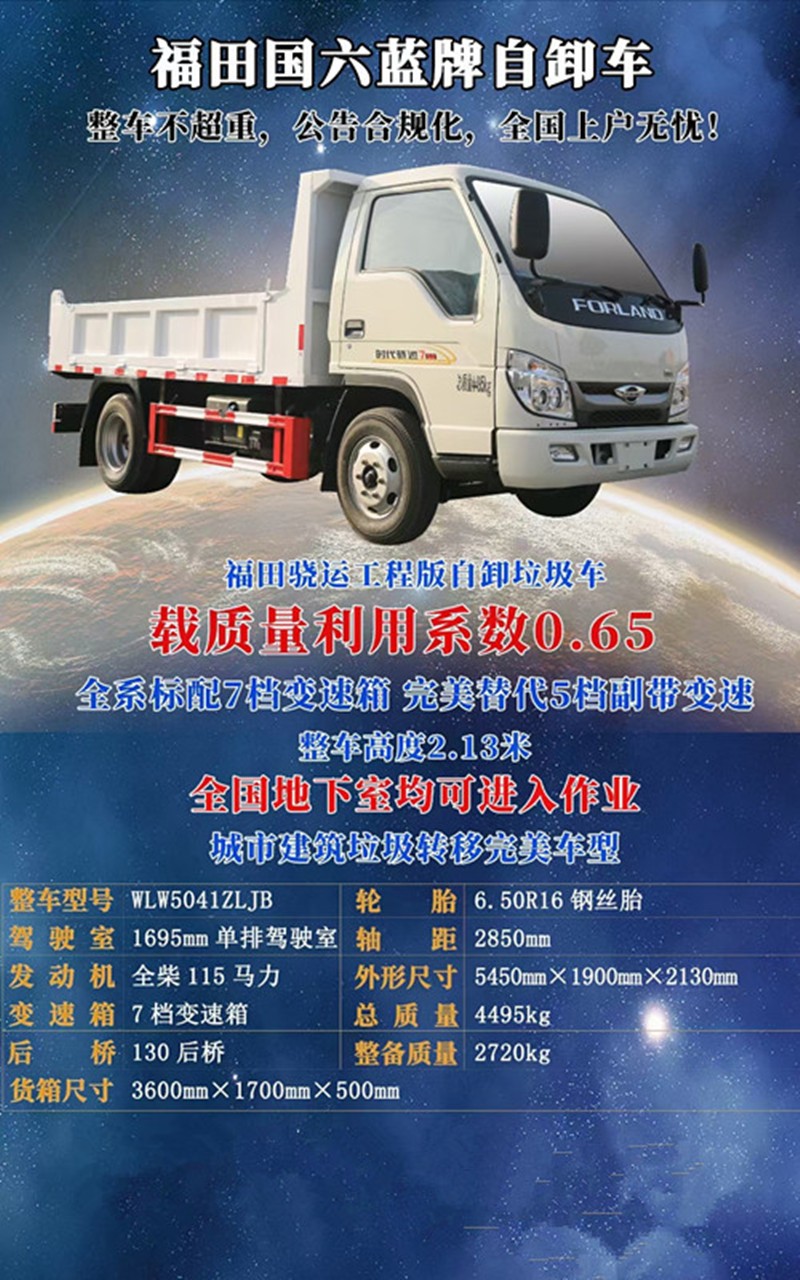 福田蓝牌3方自卸式垃圾车