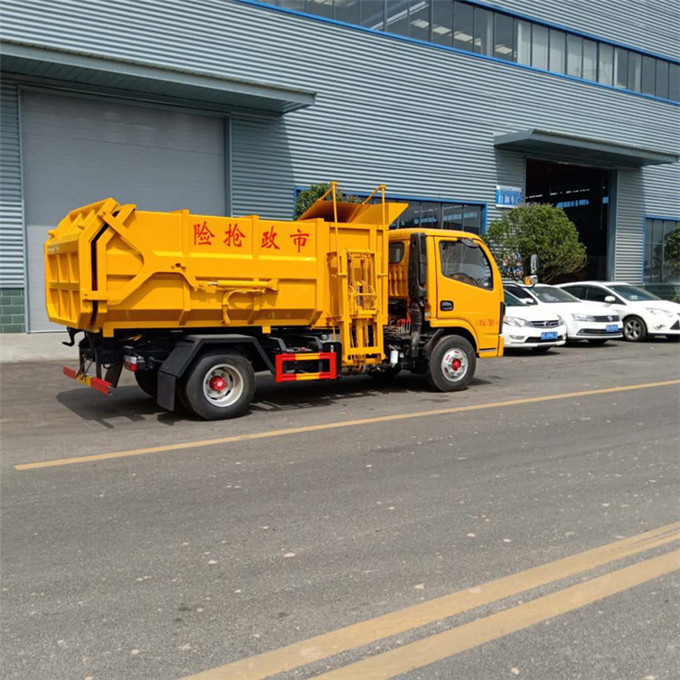 挂桶式污泥、粪污清运车配挂桶提升机,可配合垃圾桶使用,通过液压控制提升装置可将垃圾桶内污泥、粪污慢慢提升倾倒入车厢内,装满后运输到收集点进行自卸式倾倒。优点在于一台车可配多个垃圾桶使用,密封好,运输途中滴水不漏,驾驶室内外两用操控,司机师傅不下车在驾驶室内即可完成箱体卸料控制。广泛用于收运含水污泥、粪污粪便、含水垃圾、淤泥等。